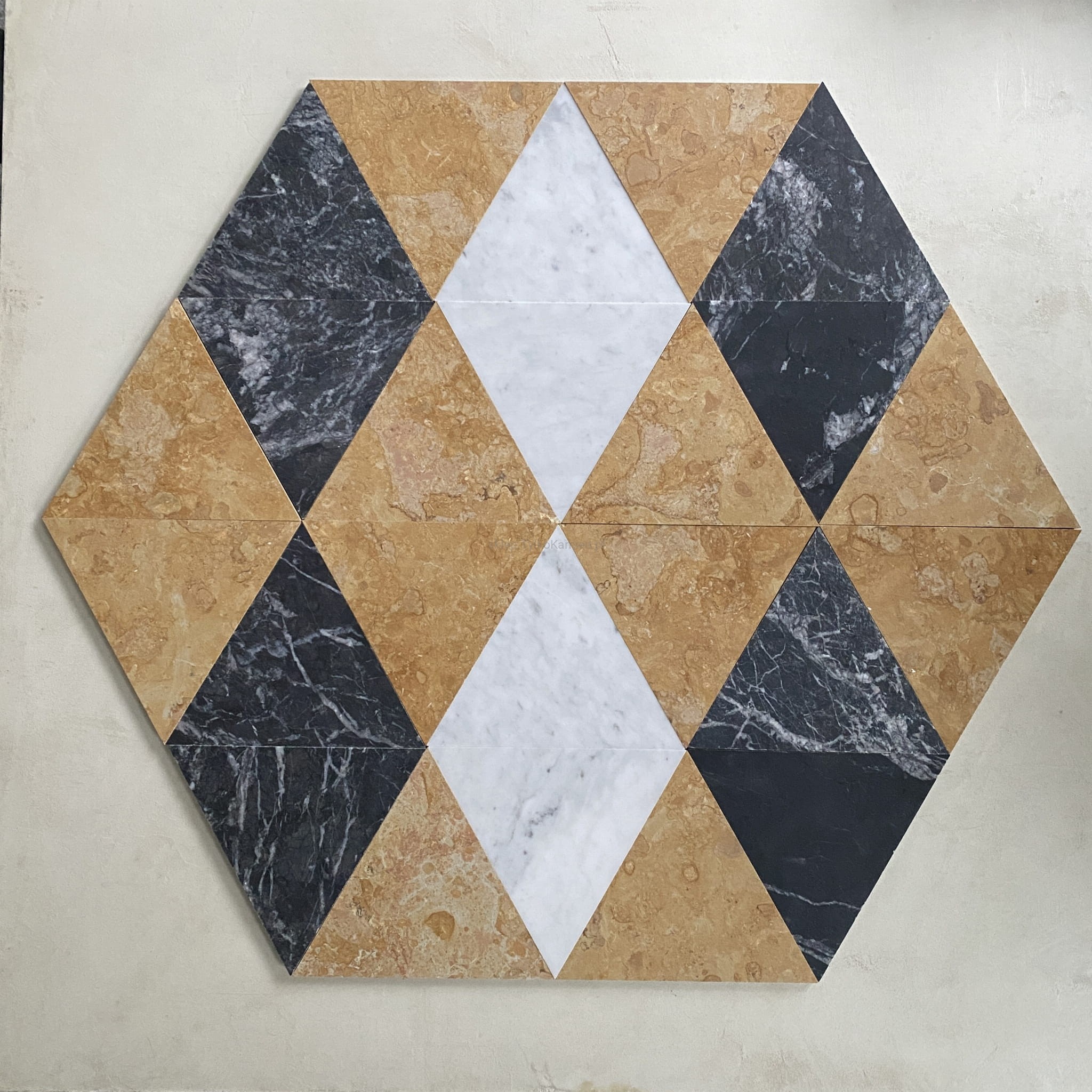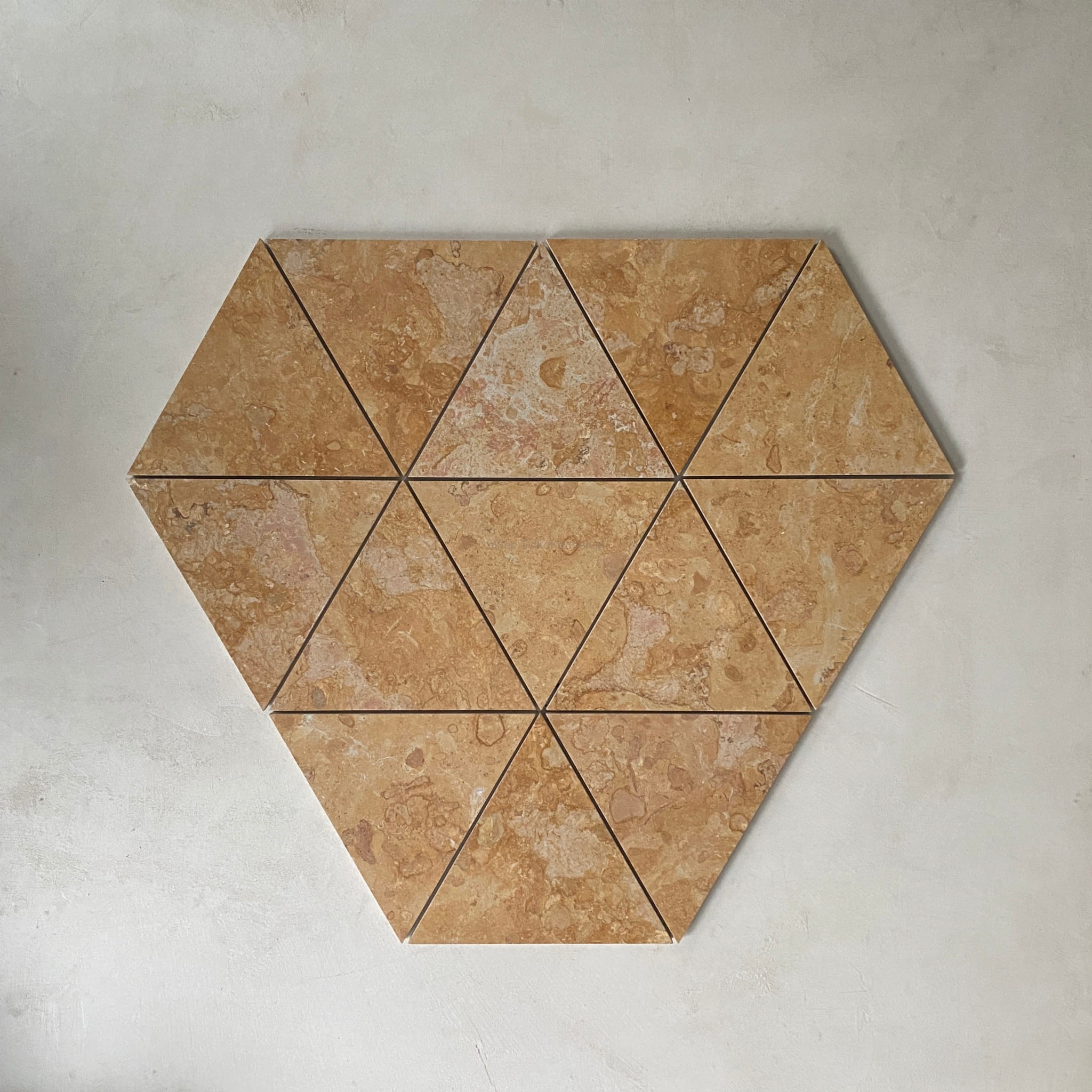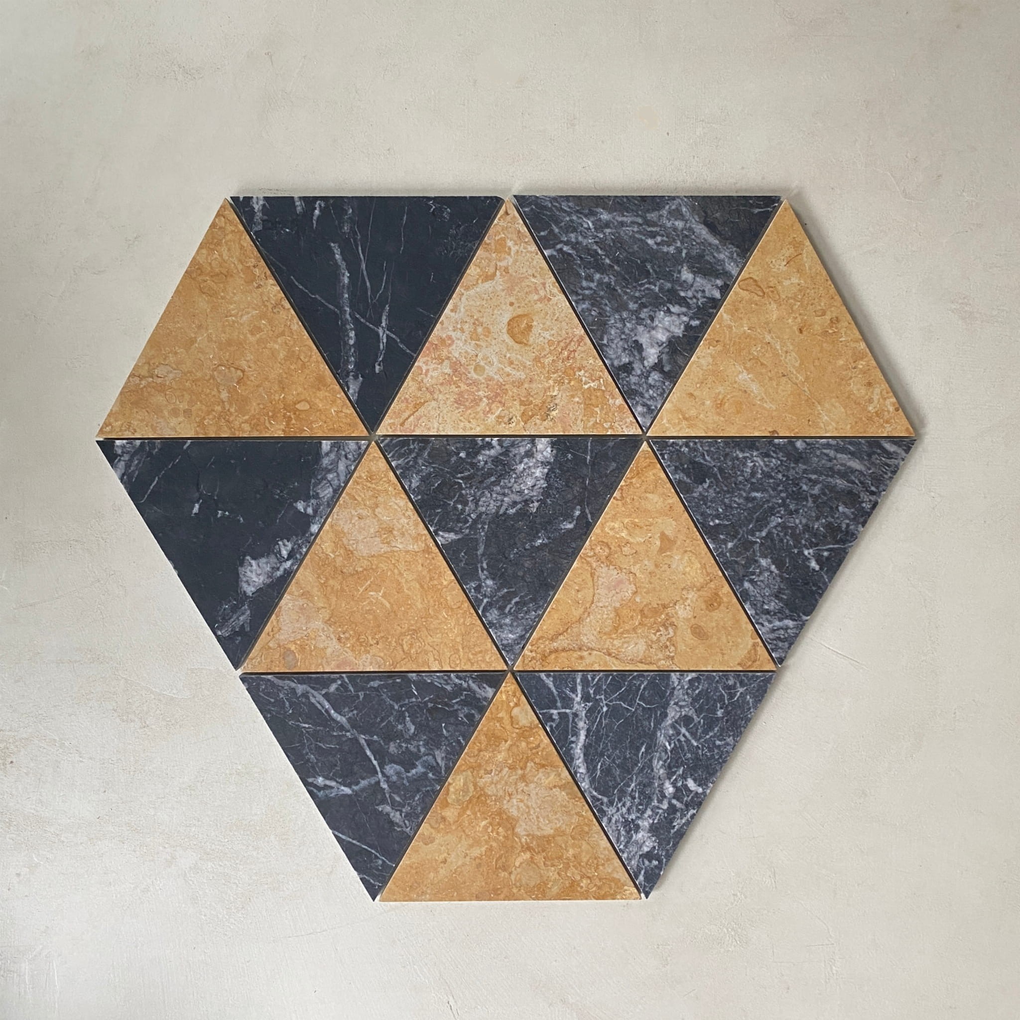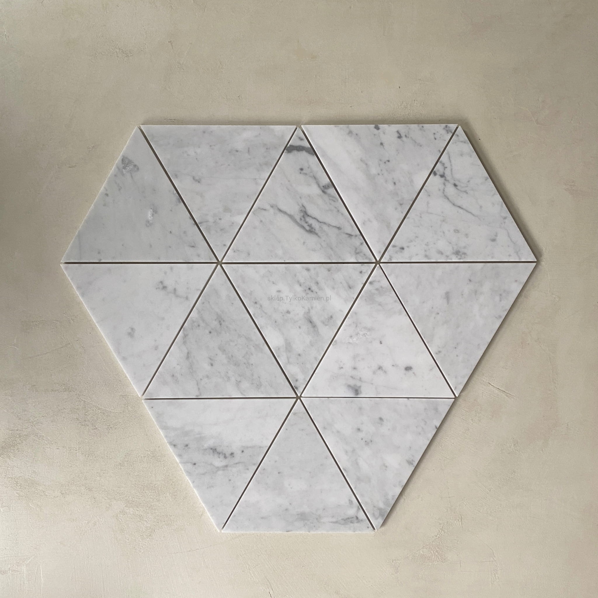 Diamond - kolekcja wyjątkowych płytek w kształcie trójkąta wyciętych z prawdziwego marmuru. Niesamowite, jedyne, niepowtarzalne. Możesz z nich stworzyć swój własny wzór mieszając kolory lub ułożyć 1 kolor a niebanalny kształt i tak zrobi efekt WOW! Wykończenie matowe, surowe cięcie. Na 1 m2 przypada 56 sztuk.