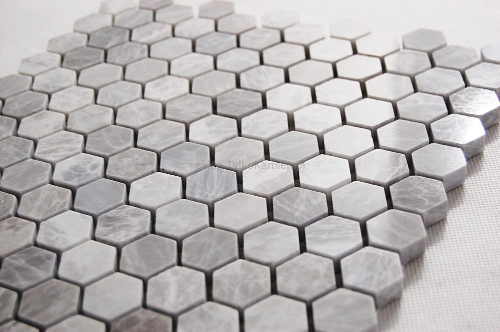 Piękna mozaika Nordic zbudowana z sześciokątnych elementów w trzech odcieniach szarości. Drobne kawałki tureckiego marmuru tworzą delikatny wzór wykończony w sposób polerowany. Ten model świetnie odnajduje się w nowoczesnych wnętrzach, ale nie tylko!
