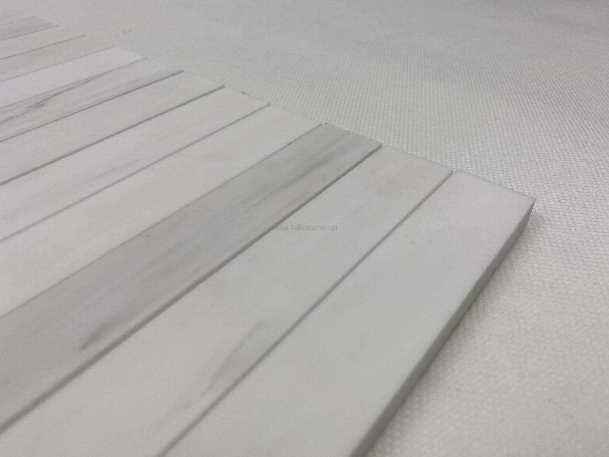 Mozaika stworzona z pasków wykonanych z białego marmuru pochodzącego z Turcji. Jej piękny, czysty kolor jest na tyle uniwersalny, że płytki nadają się do każdego typu wystroju- niezależnie czy chcemy by w naszej kuchni zapanował styl skandynawski czy też rustykalny. Świetnie nadaje się również do wykończenia łazienki.