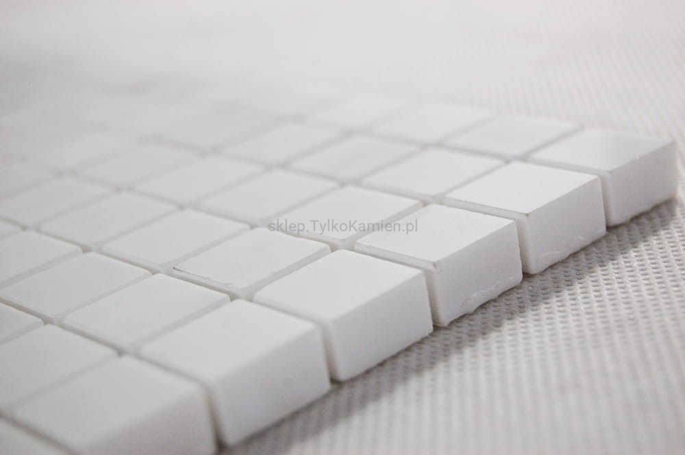 Mozaika marmurowa mniejsza kostka mleczno-biała 29,5 x 29,5 x 1 cm matowa