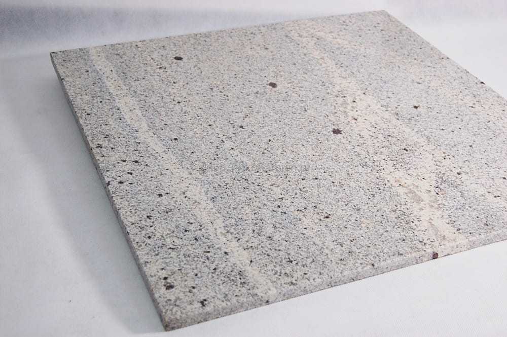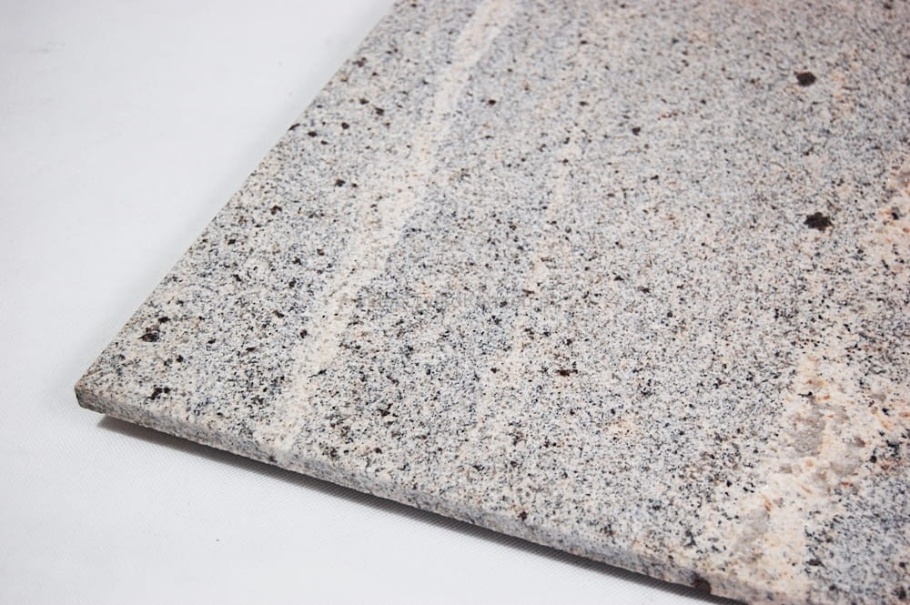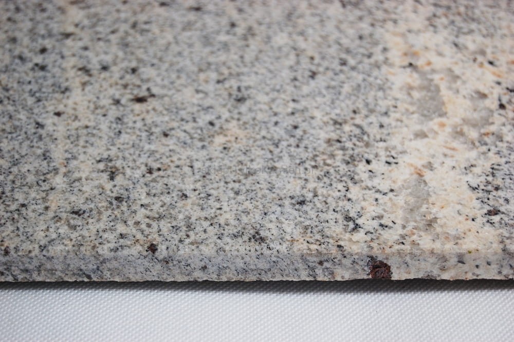 New Kashmir White to ciekawy granit sprowadzany z Indii. Bazowym kolorem kamienia jest delikatna szarość, która, nakrapiana licznym beżowymi i czarnymi przebarwieniami, tworzy oryginalny wzór. Granity to niezwykle twarde kamienie, odporne na uszkodzenia, dzięki czemu New Kashmir White nie musi zostać umieszczony jedynie wewnątrz.