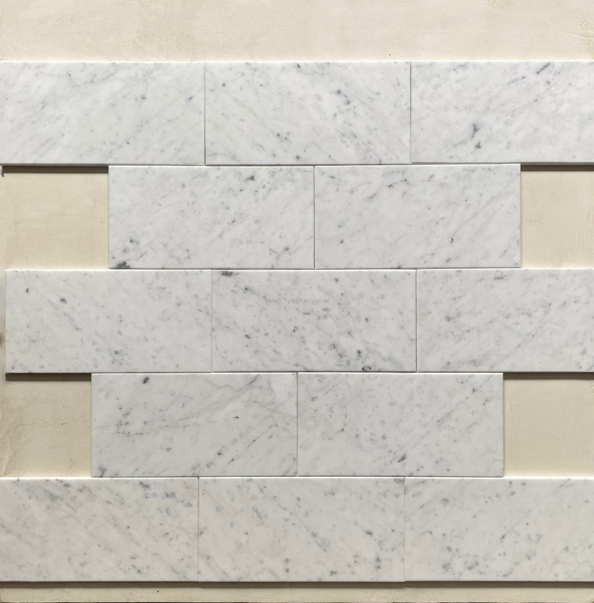 Klasyczne płytki kamienne z włoskiego marmuru Carrara Bianco. Biały marmur z delikatnymi szarymi żyłkami. Klasyczna, subtelna, elegancka. Płytki w formacie większej cegiełki. Rozmiar płytek: 30,5x15,2x1cm. Wykończenie matowe. Delikatnie fazowane krawędzie sprawią, że wzór, który ułożymy, będzie bardziej widoczny. Dla efektu w klasycznym włoskim stylu polecamy szarą cementową fugę.