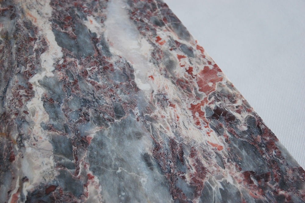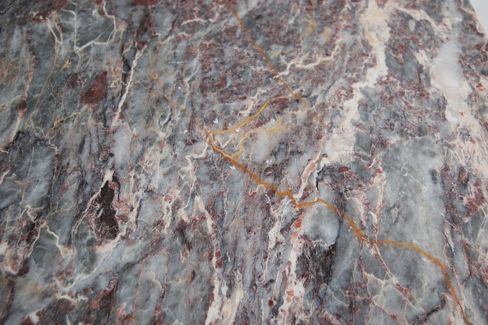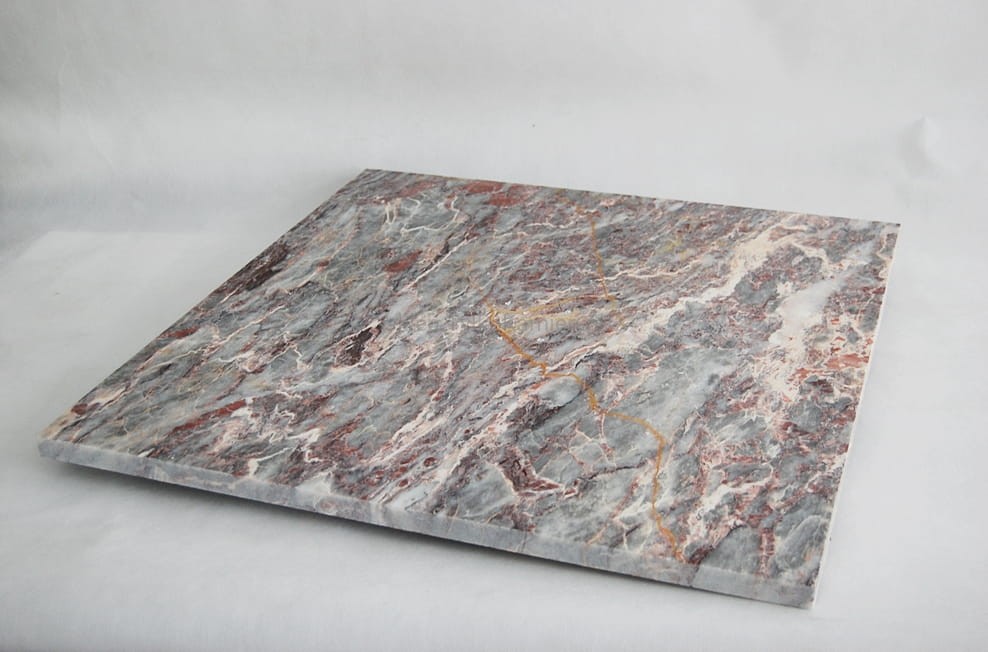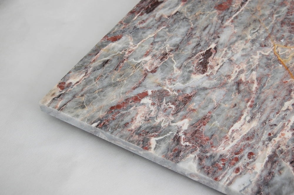 Wspaniałe, oryginalne płytki z szarego marmuru, bogato zdobionego różowymi i kremowymi żyłkami.