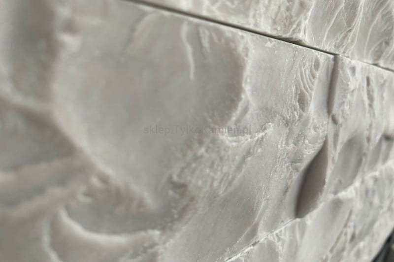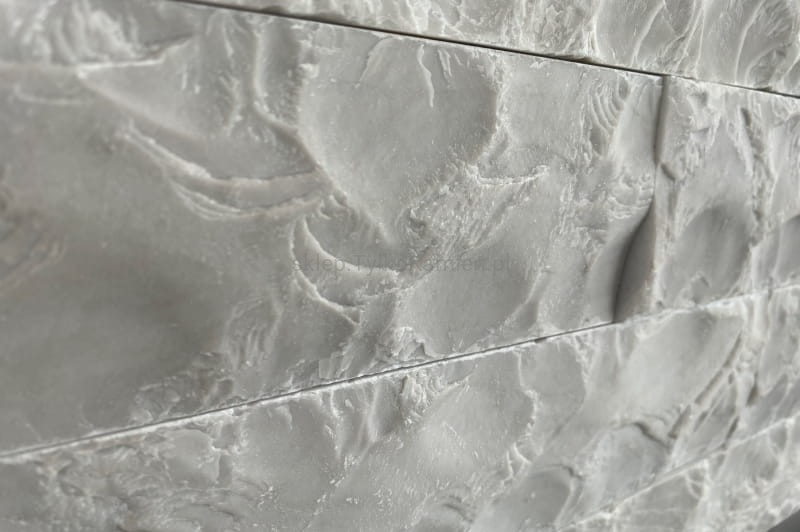 Ten model zbudowany został z tureckiego marmuru Ice Grey. Gładki, mlecznoszary kamień przepięknie odnajduje się jako dekoracja we wnętrzach w stylu skandynawskim i równie dobrze wygląda na elewacji każdego domu.